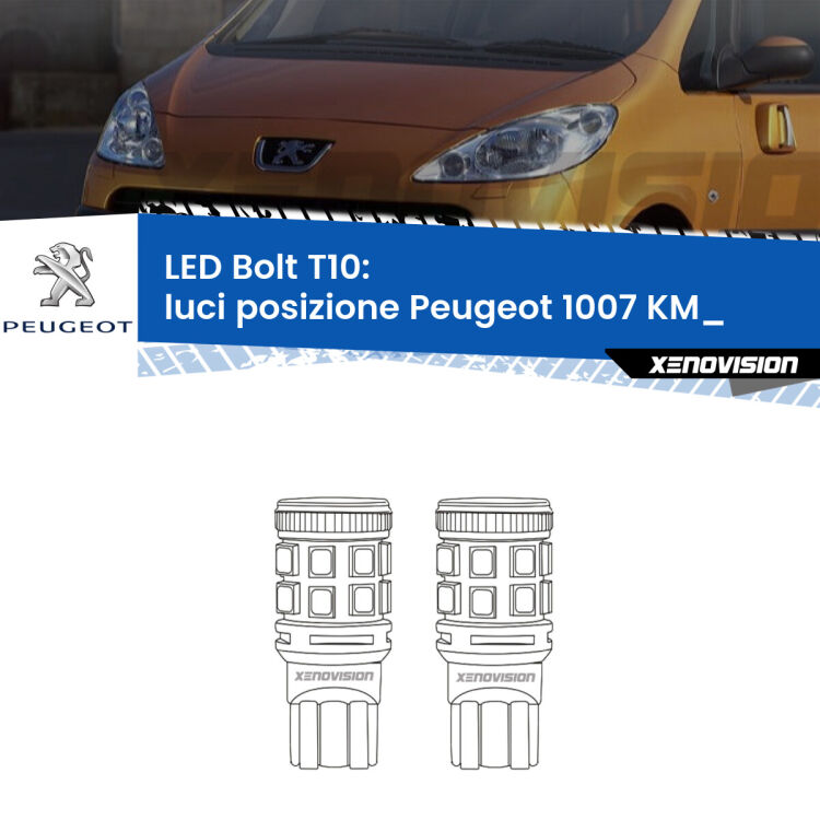 Coppia LED Luci posizione per Peugeot 1007 KM_ 2005-2009. Le lampade LED "Bolt" T10 per Luci posizione Peugeot 1007 di Xenovision sono affidabili e luminose.
